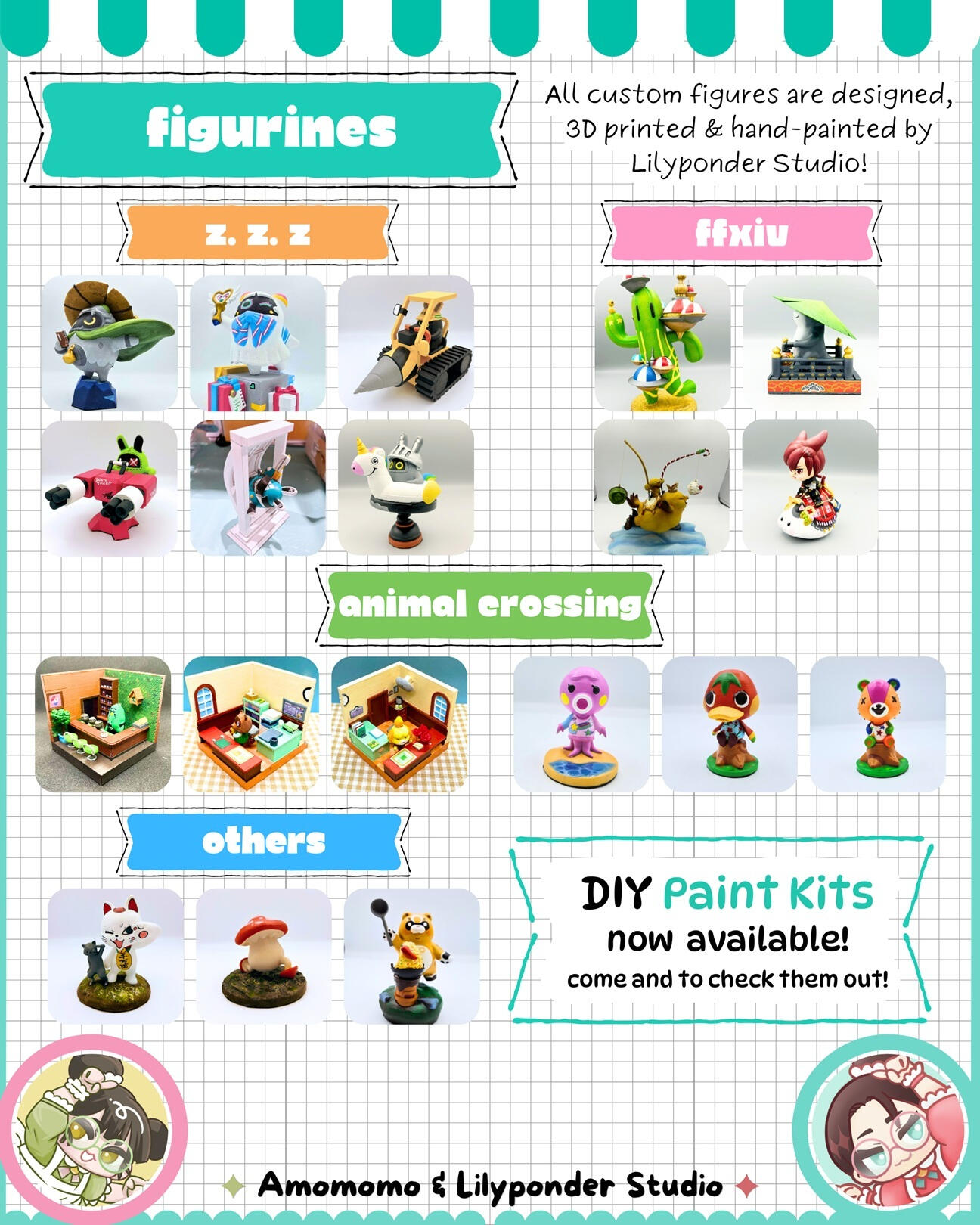 All figures are custom 3D sculpted, 3D printed, and hand-painted by us. For personal fan merch collection/appreciation purposes only via artist alley.